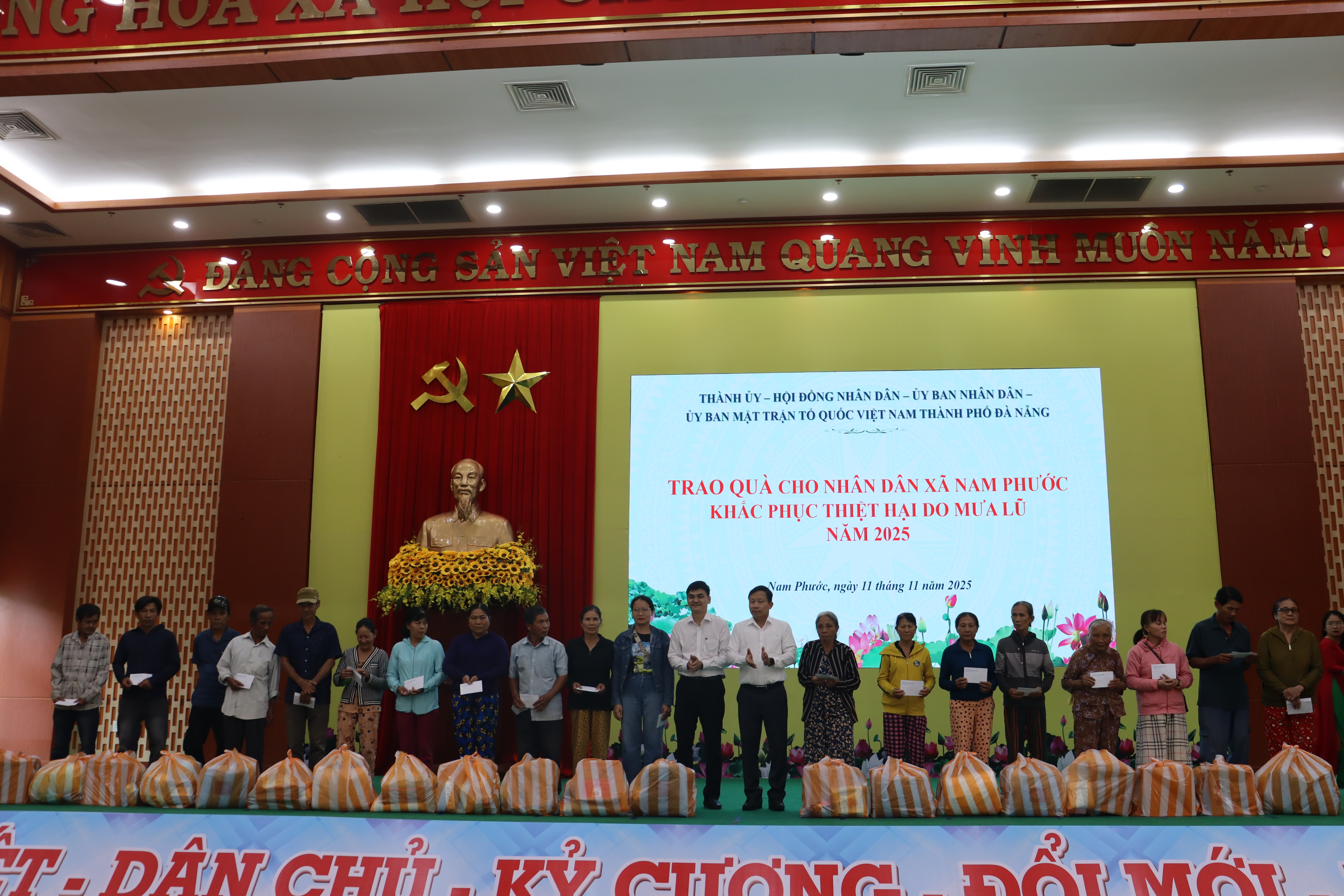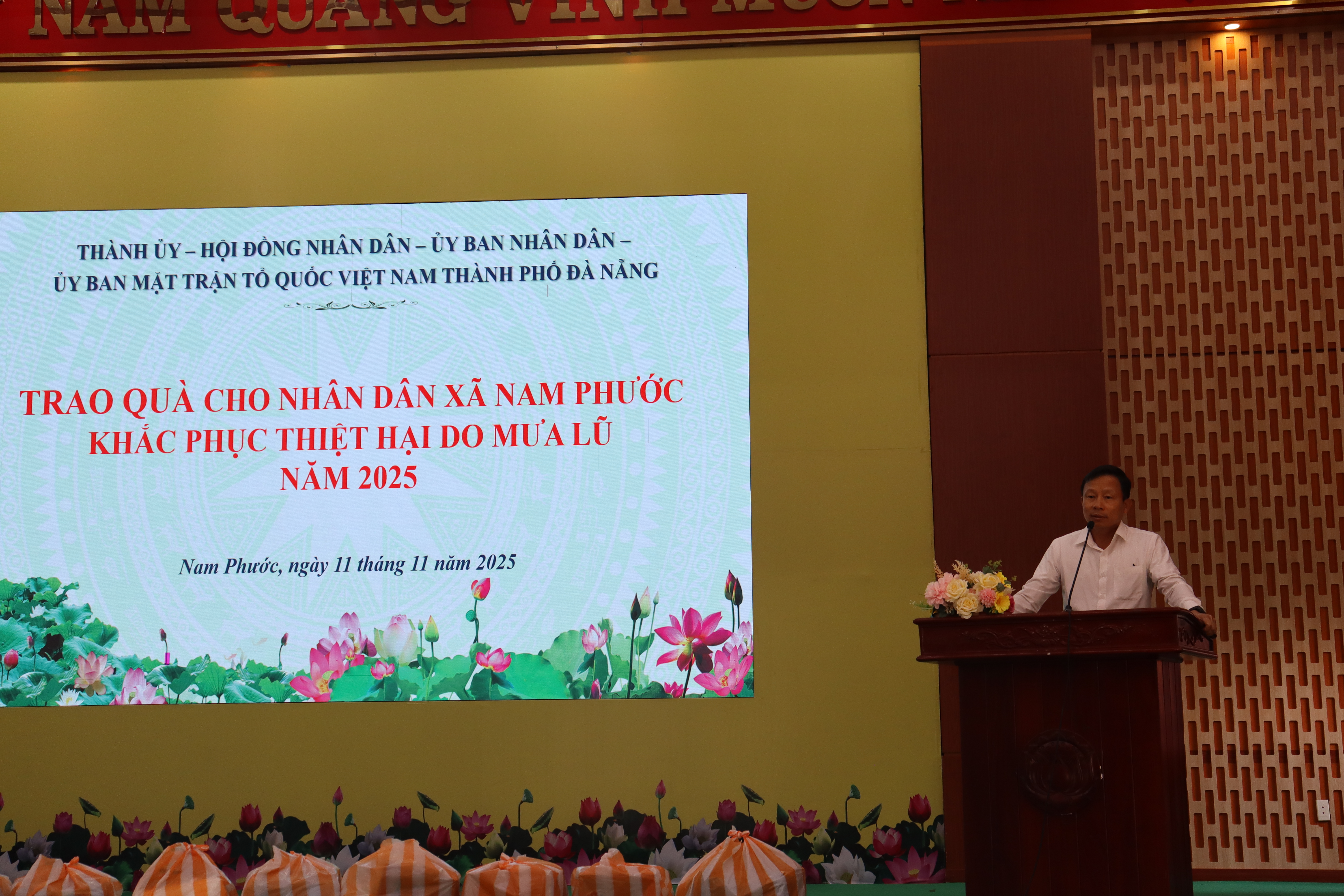 Chiều ngày 11 tháng 11, Đồng chí Đoàn Duy Tân - UVBTV Thành ủy, Trưởng Ban Tổ chức Thành ủy thay mặt Thành uỷ - HĐND - UBND - UBMTTQVN thành phố Đà Nẵng trao 40 suất quà cho nhân dân thiệt hại do lũ lụt xã Nam Phước.
