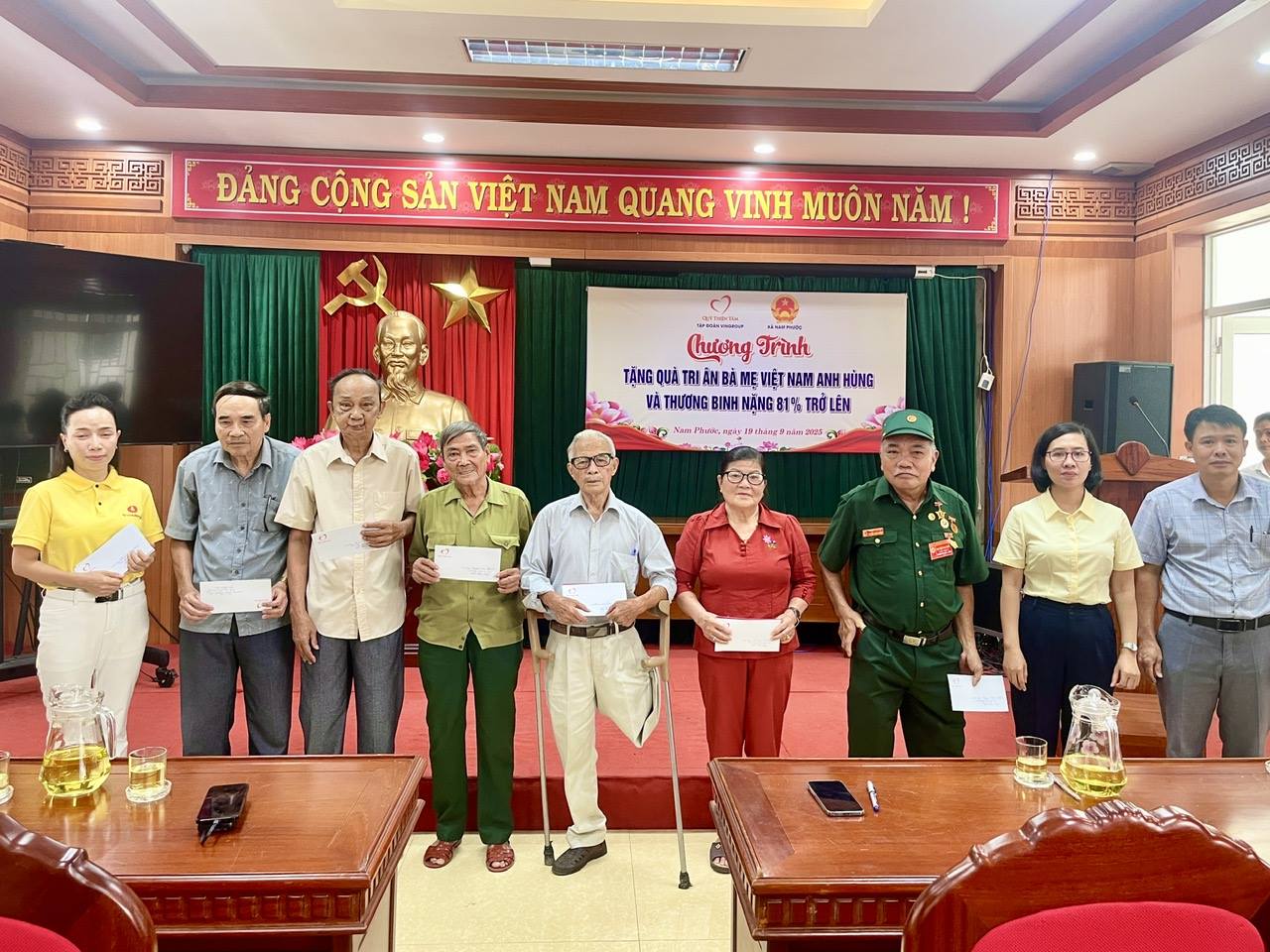 Tại buổi trao quà, lãnh đạo xã cùng với đại diện quỹ thiện tâm đã ân cần hỏi thăm các mẹ VNAH còn sống, cùng với các thương binh của xã Nam Phước, gửi lời chúc sức khỏe đến các mẹ cũng như thân nhân các mẹ VNAH và các thương binh. Có 29 phần quà được lãnh đạo xã và tập đoàn Vingroup trao tặng, mỗi phần quà là 20 triệu đồng, với tổng trị giá gần 600 triệu đồng.