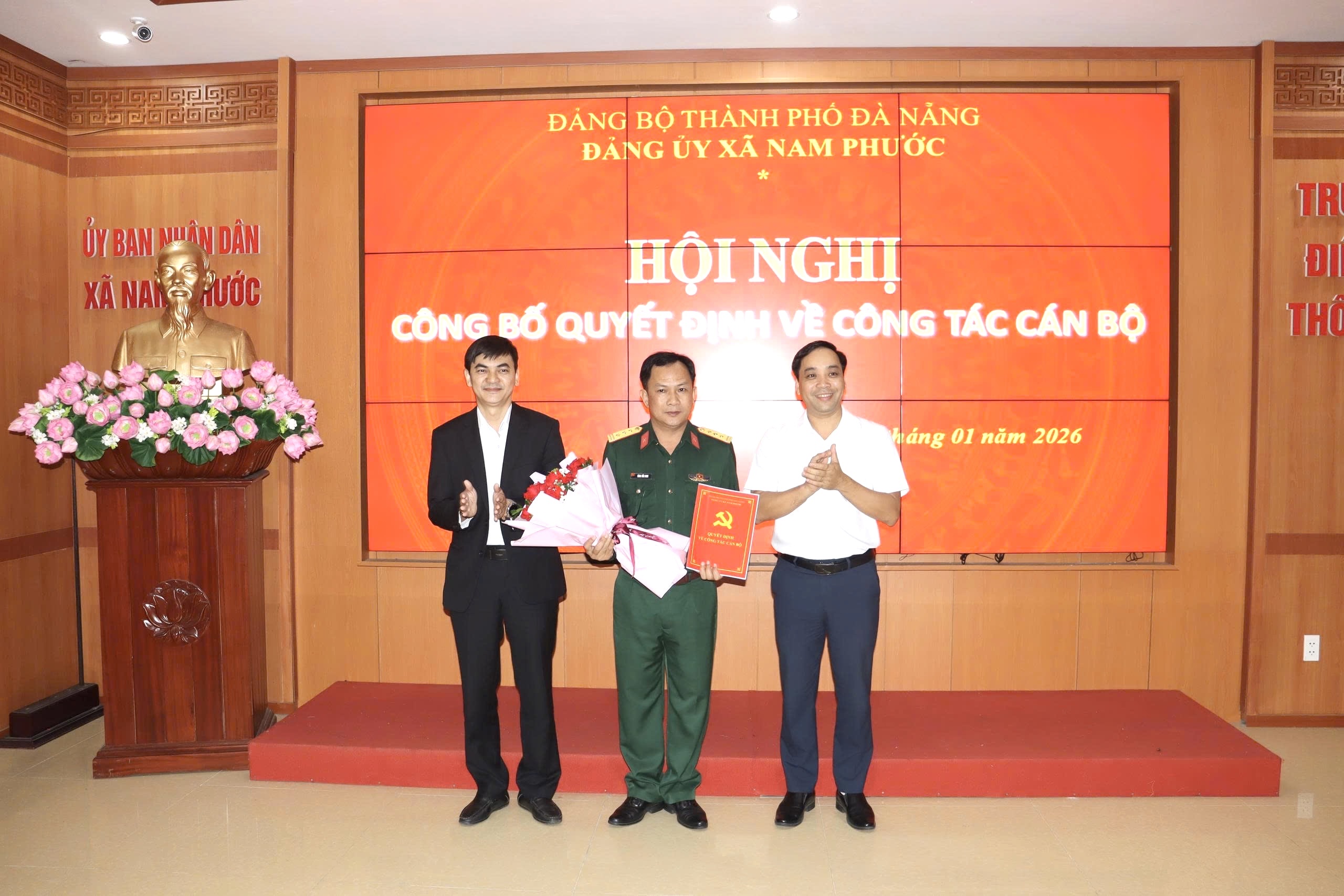 Tại hội nghị, đã công bố Quyết định của Chính ủy Quân khu 5 bổ nhiệm đồng chí Thượng tá Tăng Tấn Sinh giữ chức Chỉ huy trưởng Ban Chỉ huy Quân sự xã Nam Phước. Đồng thời, Đảng ủy xã công bố quyết định của Ban Thường vụ Thành ủy chỉ định đồng chí Tăng Tấn Sinh tham gia Ban Chấp hành Đảng bộ xã, Ban Thường vụ Đảng ủy xã Nam Phước nhiệm kỳ 2025 – 2030.
