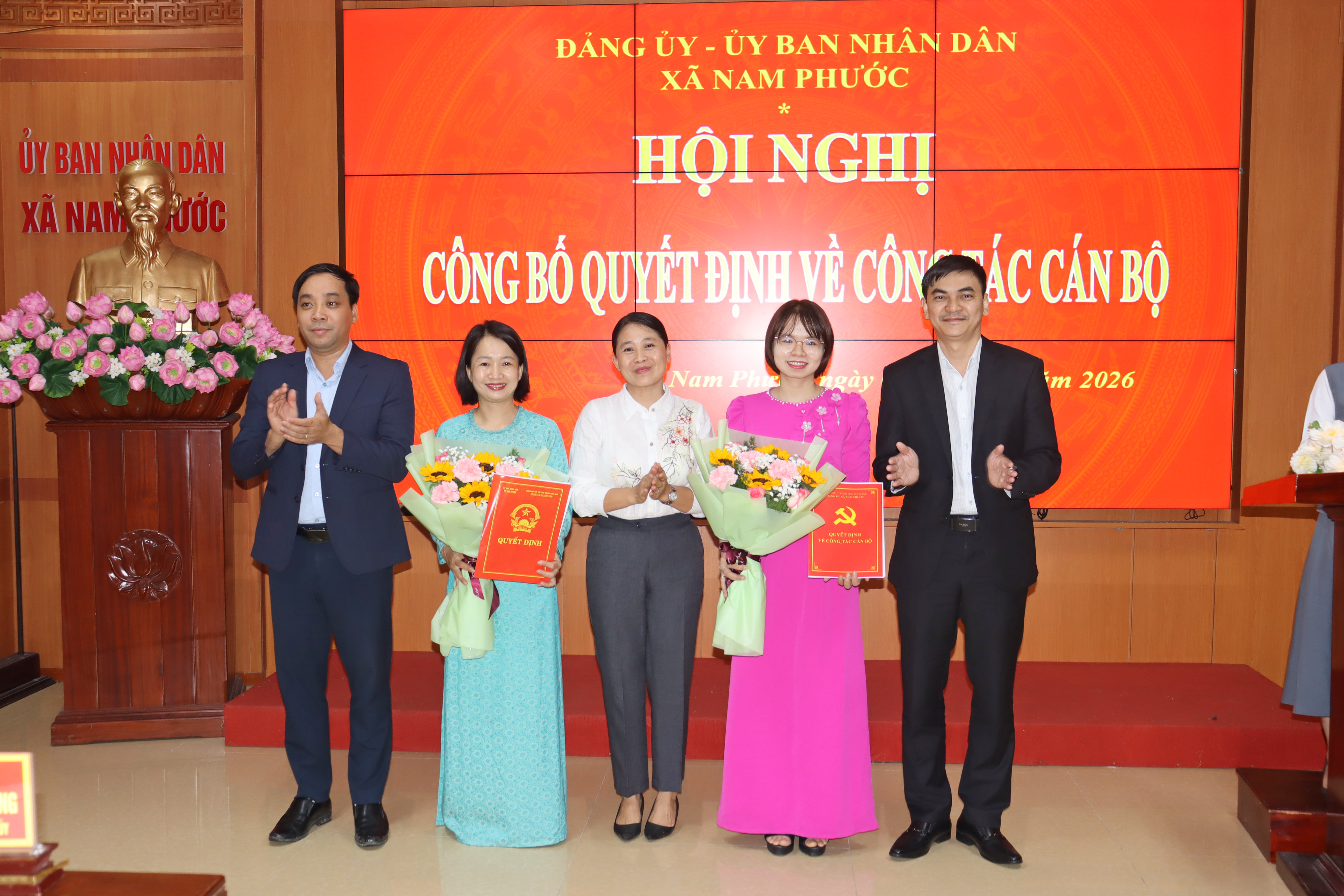 Tại hội nghị, đã công bố Quyết định đồng chí Lê Thị Thanh - chuyên viên văn phòng Đảng ủy giữ chức Phó chánh văn phòng Đảng ủy xã Nam Phước. Đồng chí - Nguyễn Châu Giang chuyên viên phòng văn hóa – xã hội xã giữ chức Phó trưởng phòng văn hóa - xã hội xã Nam Phước.