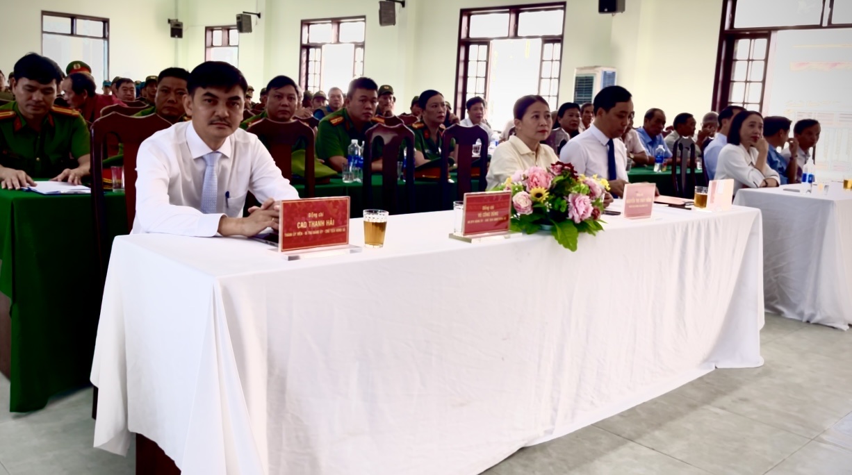 Tham dự có đồng chí Cao Thanh Hải- Thành uỷ viên, Bí thư Đảng uỷ, Chủ tịch HĐND xã. Đồng chí Nguyễn Thị Thuý Hồng - Phó bí thư thường trực Đảng ủy. Đồng chí Nguyễn Văn Khánh - Phó bí thư Đảng uỷ, Chủ tịch UBND xã. Cùng với hơn 150 đồng chí là đại biểu, cán bộ, chiến sỹ Công an, Quân sự xã và lực lượng tham gia bảo vệ an ninh trật tự cơ sở 23 thôn, khối phố trên địa bàn tham dự lễ.