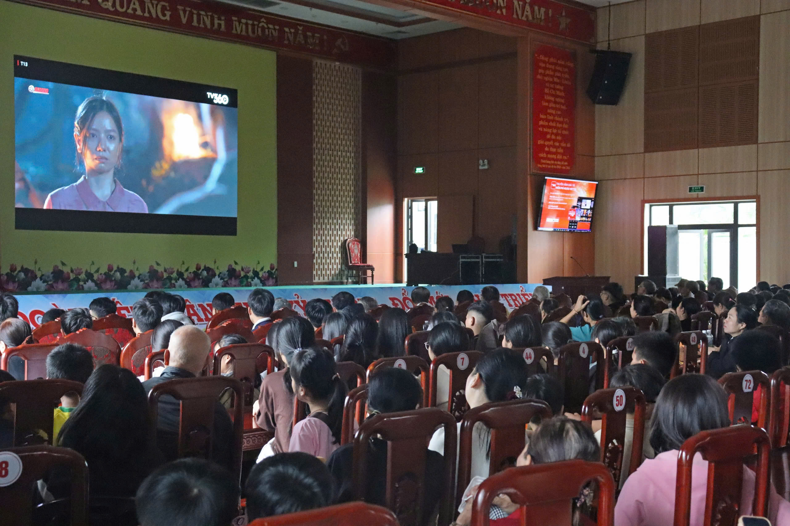 Buổi chiếu phim có sự tham dự của đại diện tập đoàn viễn thông quân đội Viettel, cán bộ, đảng viên và đông đảo Nhân dân trên địa bàn xã. Qua buổi chiếu phim nhằm bồi dưỡng, giáo dục truyền thống cách mạng cho cán bộ, đảng viên, đoàn viên, hội viên và Nhân dân trên địa bàn. Bộ phim được chiếu miễn phí với 3 suất trong ngày, thu hút hơn 1500 cán bộ, Đảng viên và nhân dân đến xem.