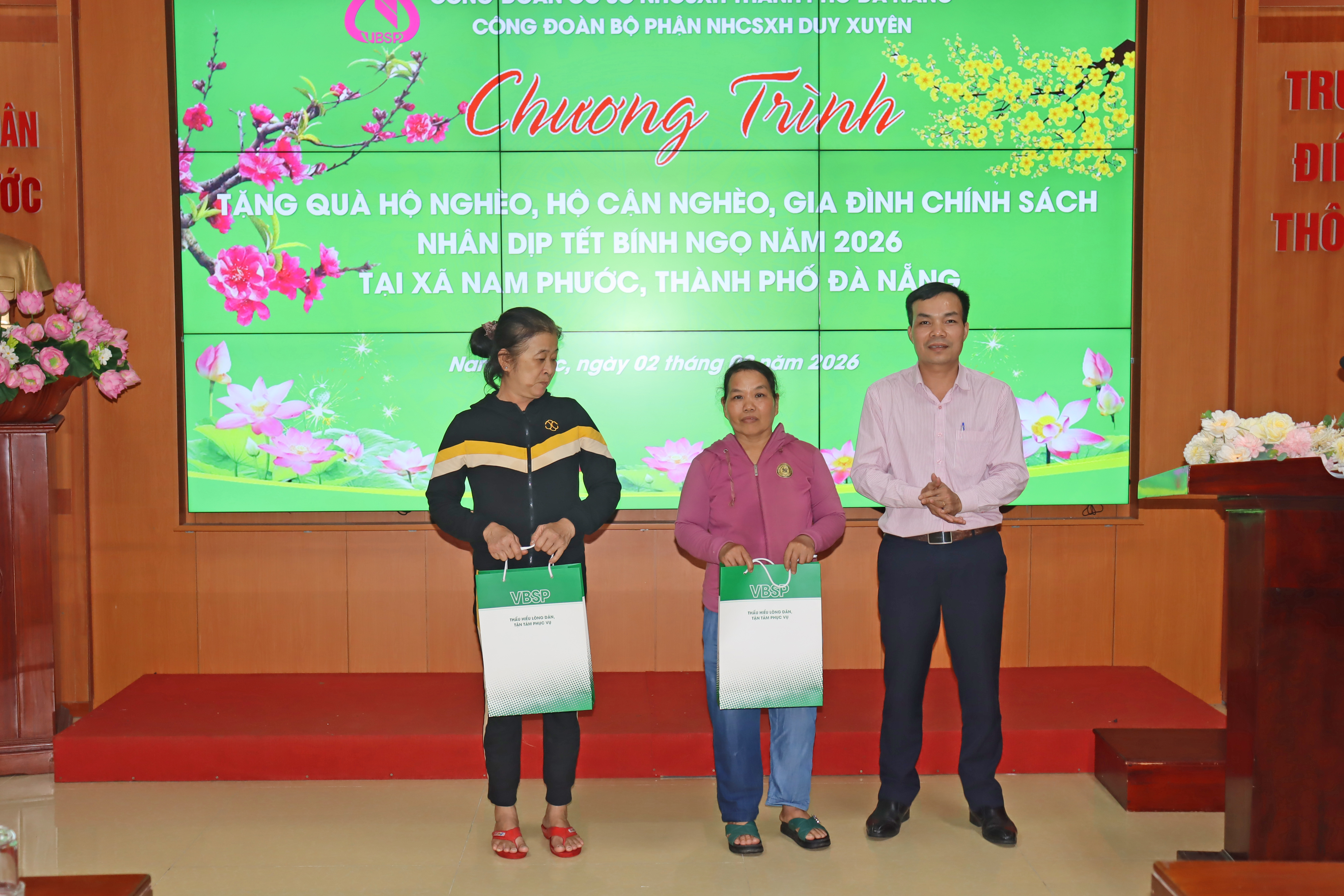 Tại chương trình, NHCSXH đã trao 13 suất quà, tổng trị giá 500 nghìn đồng tặng các hộ nghèo, cận nghèo, gia đình chính sách trên địa bàn xã Nam Phước. Đây là tình cảm, sự sẻ chia của tập thể cán bộ, đoàn viên công đoàn, người lao động NHCSXH, góp phần giúp các gia đình đón Tết cổ truyền dân tộc ấm áp, đủ đầy hơn.