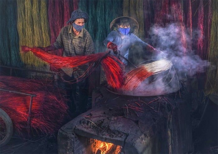 Quá trình nhuộm màu và dệt chiếu rất kỳ công và mất nhiều thời gian
