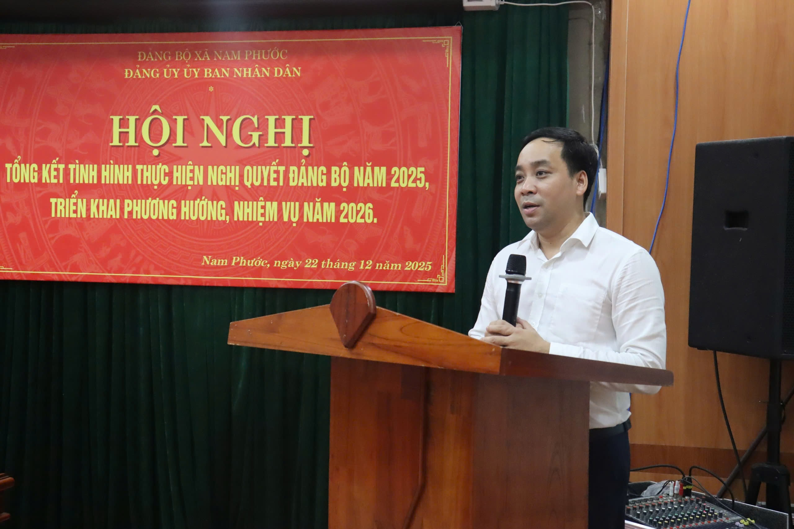 Chiều ngày 22 tháng 12 năm 2025, Đảng ủy Ủy ban nhân dân xã Nam Phước tổ chức hội nghị tổng kết tình hình lãnh đạo thực hiện nhiệm vụ chính trị năm 2025 và phương hướng, nhiệm vụ năm 2026.